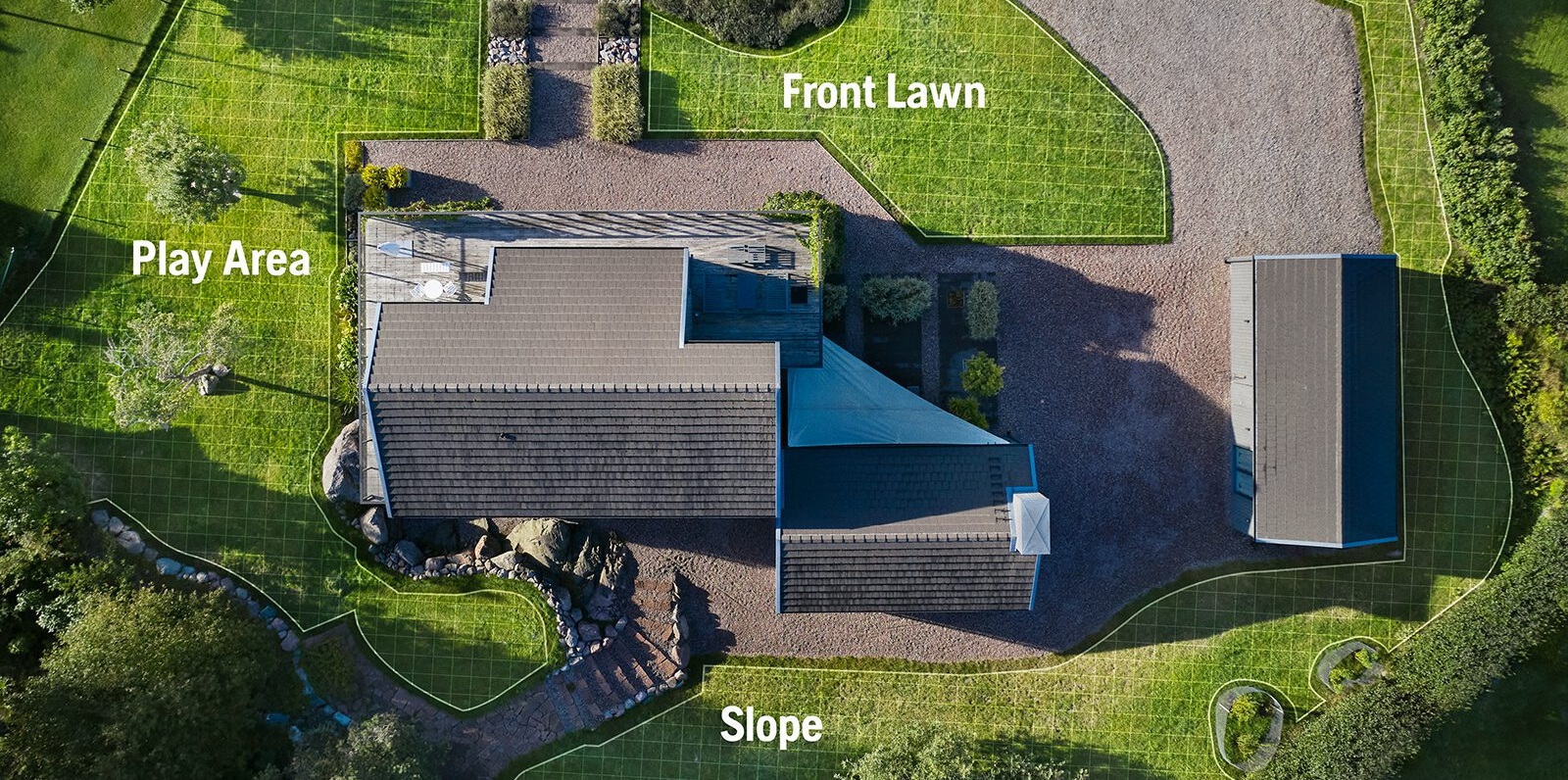 Hier kommen Modelle wie der Automower® 315 oder 320 NERA zum Einsatz. Letzterer verfügt über GPS-Navigation, Zonenmanagement und lässt sich komfortabel per App steuern.